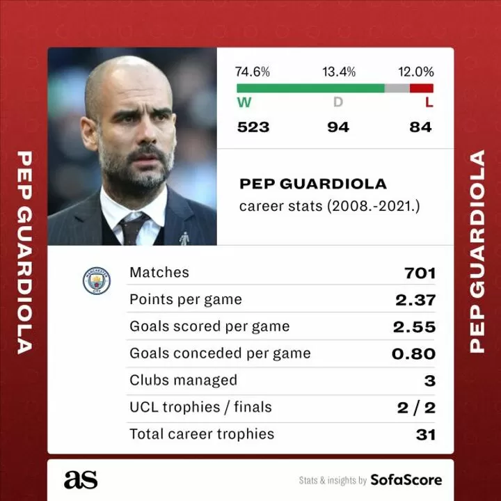ถ้าดูเฉพาะตัวเลข เป๊ปคือโค้ชที่มี Win Rate สูงที่สุดในโลก